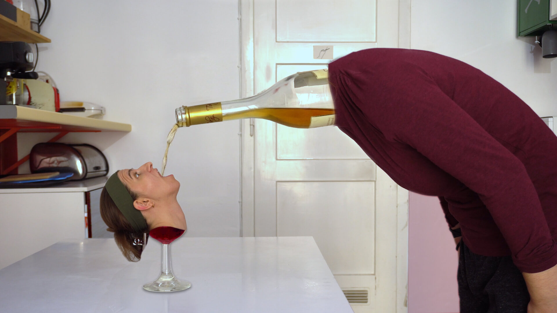 The head does it all. While other body-parts have their separate functions as instruments, the head is an all-purpose tool. The head's universality: Object-oriented media magician Anna Vasof celebrates it, and at the same time questions its primacy.