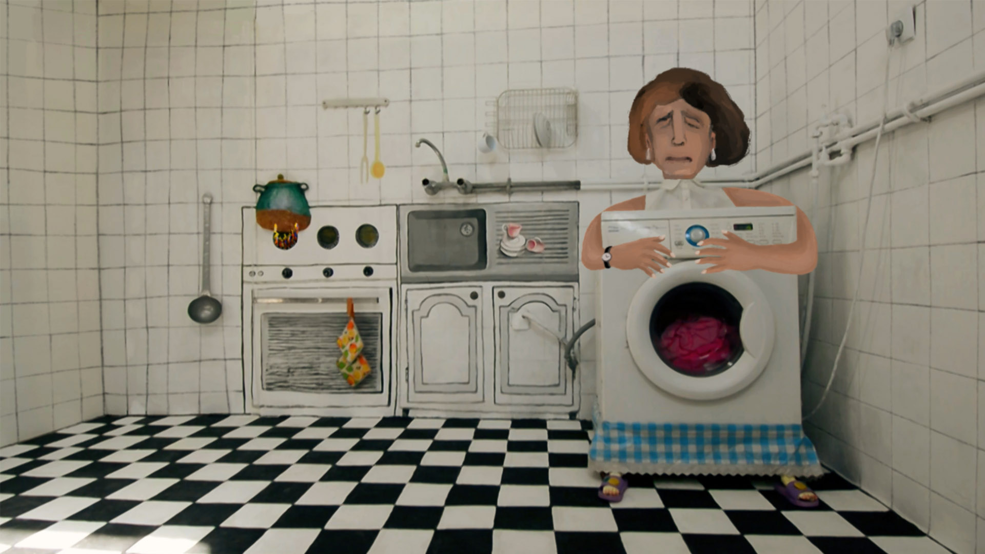 Home and family, relationships, desires, wishes and everything is summarized in the kitchen. The stuttering boy is there alone, playing with his imagination.