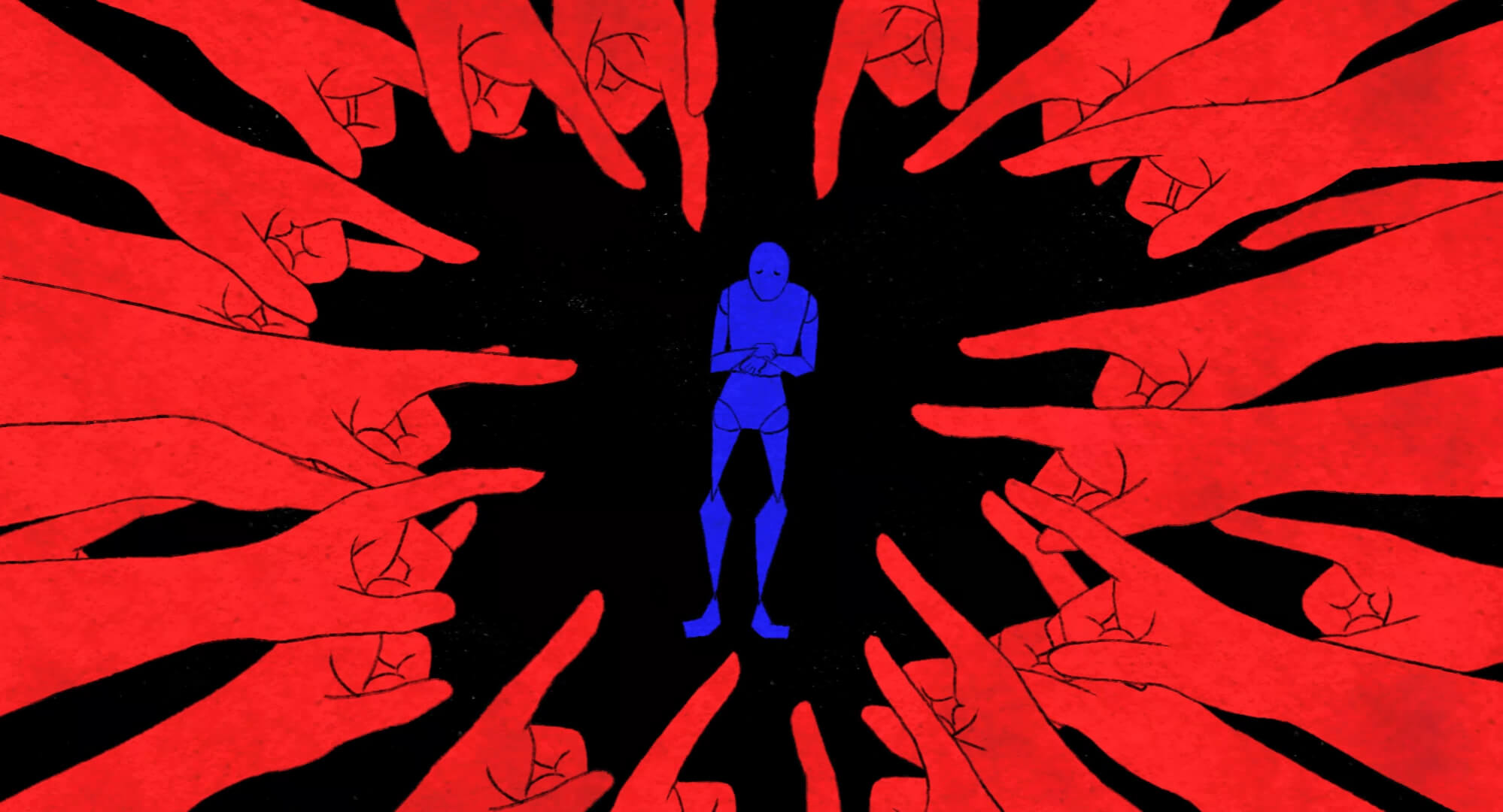 People are waiting in an endless corridor to pay for the movie of their lives. In these movies, they play the protagonists.