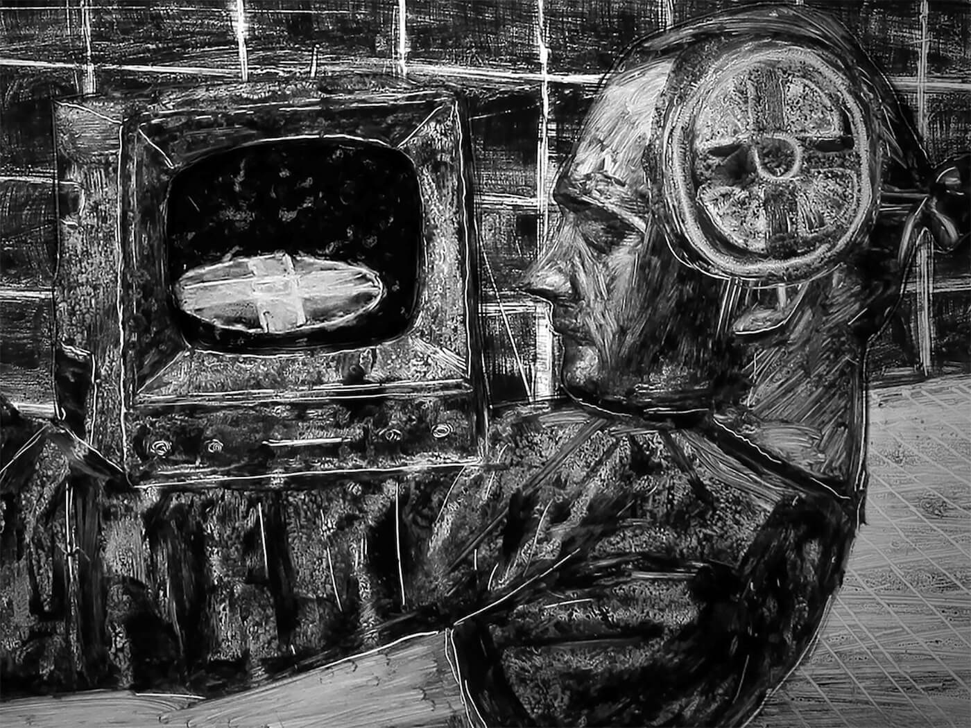 A grey evening in Düsseldorf. Birds pass over the noisy city. A young man seeks refuge in a kiosk and drinks coffee to keep his exhaustion at bay but nods off regardless. Flocks of birds follow him into his daydream, in which he tries to escape his isolation and the sense of being trapped.