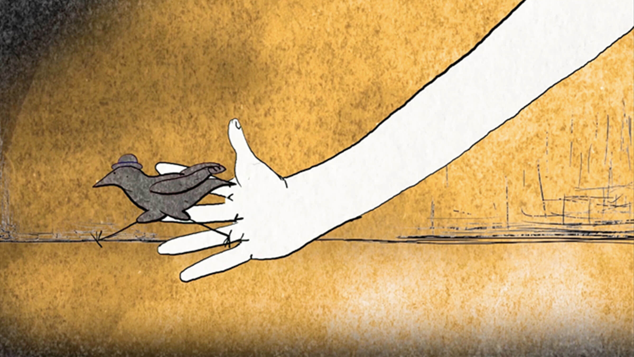 A boy wakes up in the middle of the night and notices a feather on his pillow and also finds a hole in the pillow. The dream begins, in which he is a participant with the naked birds around him.